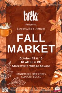 hello Local Presents Streetsville’s Annual Fall Market October 15, 2022 - October 16, 2022 10:00 am - 6:00 pm
